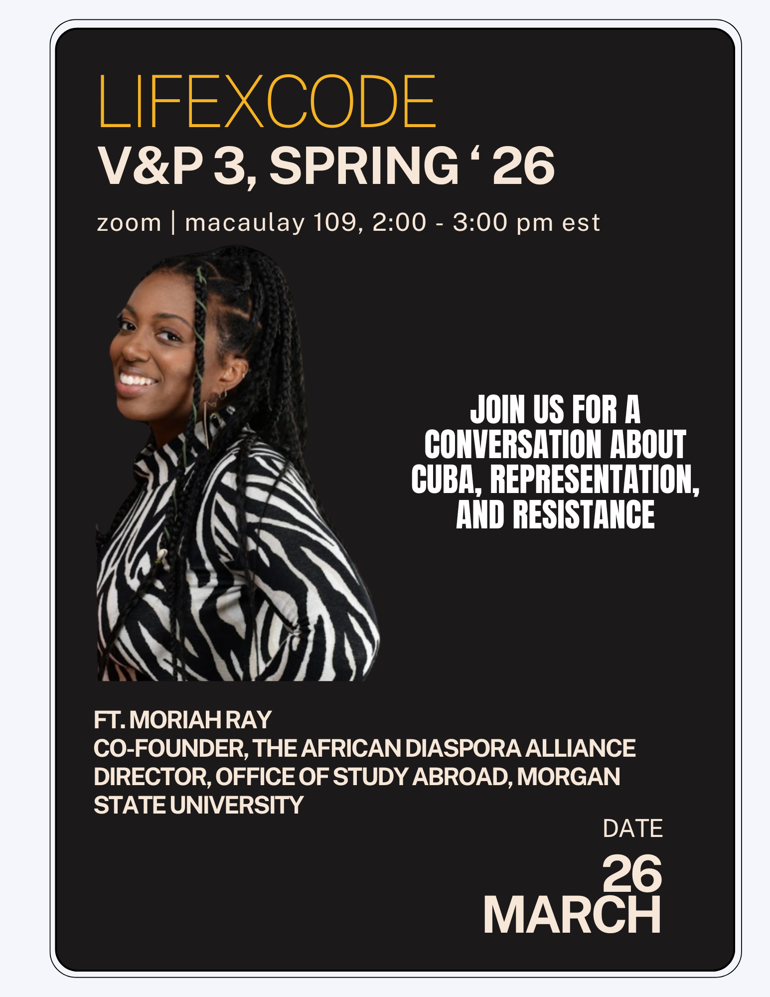 Back to All Events LifexCode: Vision&Practice Session 3 Thursday, March 26, 2026 2:00 PM 3:00 PM Google Calendar ICS